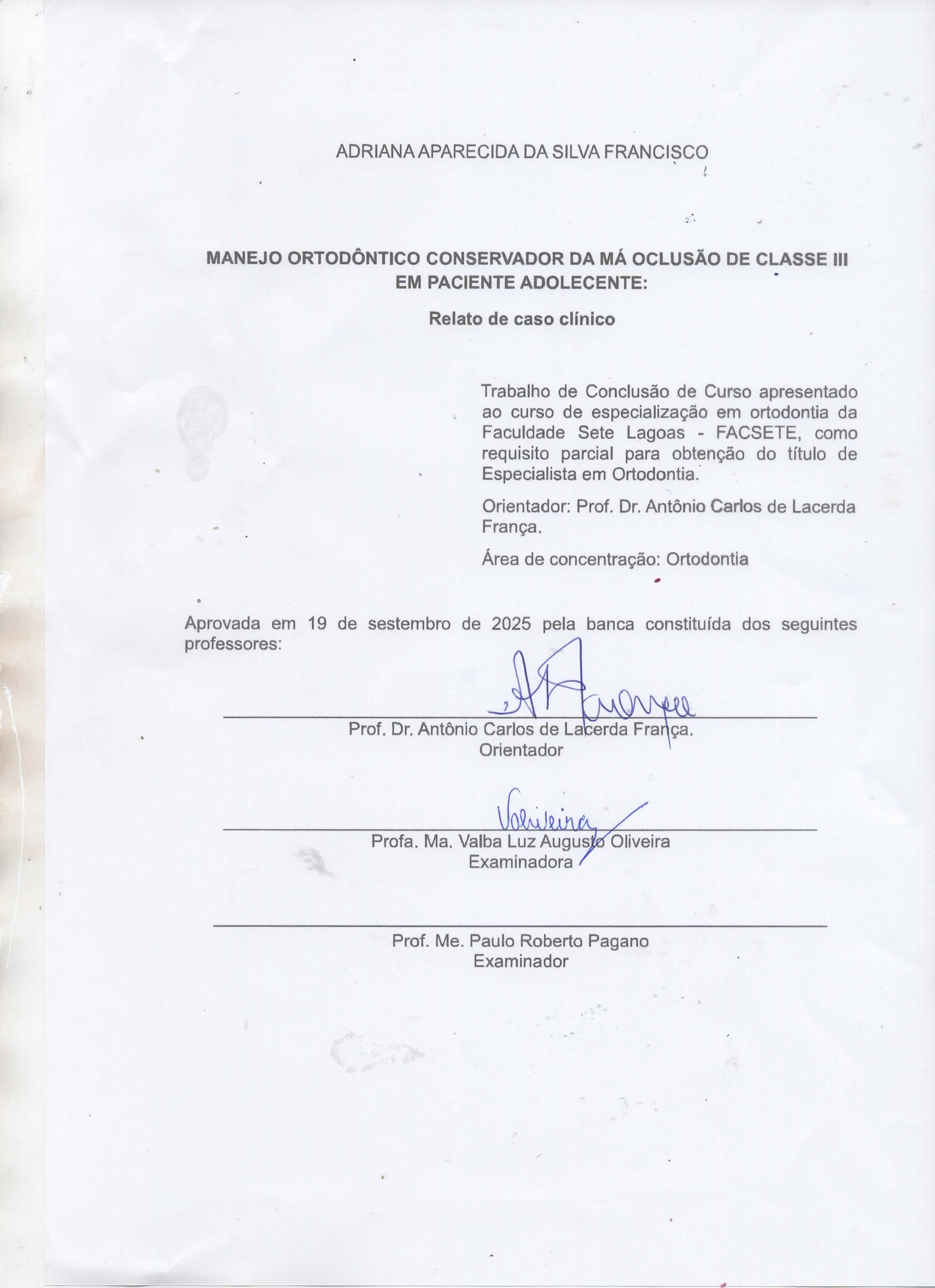 MANEJO ORTODÔNTICO CONSERVADOR DA MÁ OCLUSÃO DE CLASSE III EM PACIENTE ADOLECENTE: