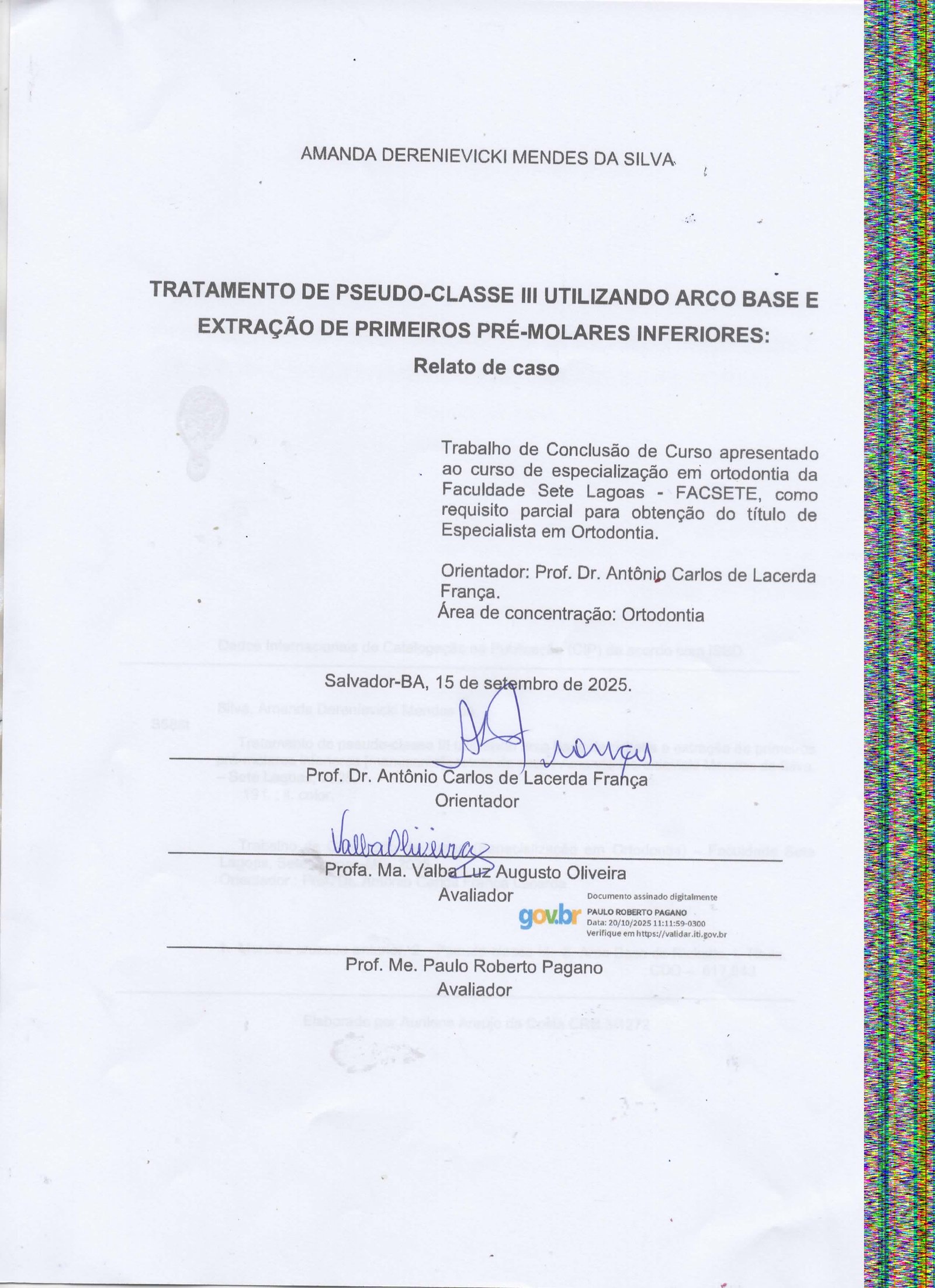 TRATAMENTO DE PSEUDO-CLASSE III UTILIZANDO ARCO BASE E EXTRAÇÃO DE PRIMEIROS PRÉ-MOLARES INFERIORES: