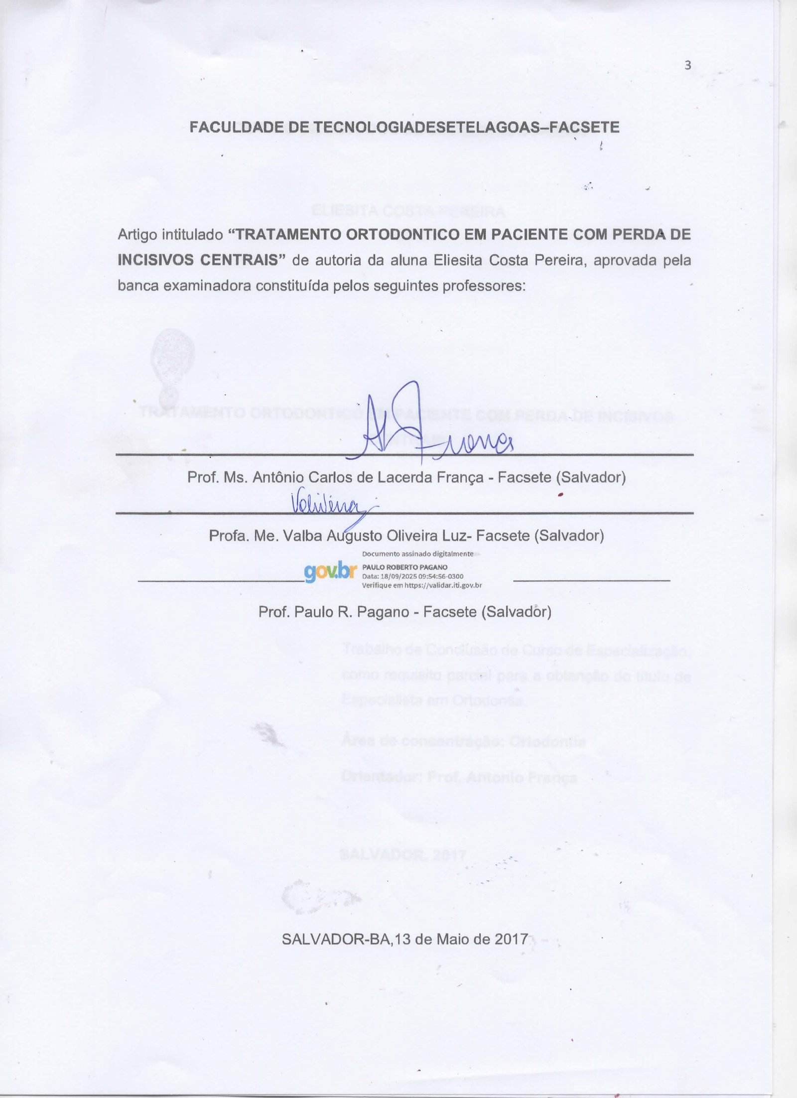 TRATAMENTO ORTODONTICO EM PACIENTE COM PERDA DE INCISIVOS CENTRAIS