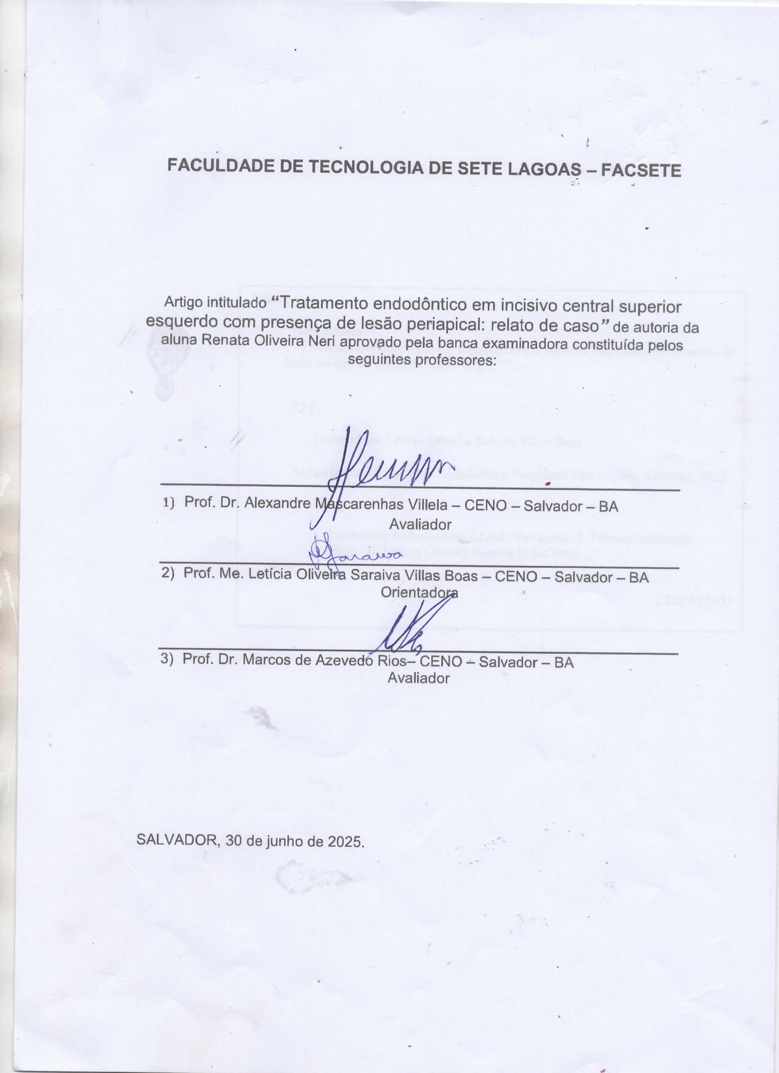 TRATAMENTO ENDODÔNTICO EM INCISIVO CENTRAL SUPERIOR ESQUERDO COM PRESENÇA DE LESÃO PERIAPICAL: UM RELATO DE CASO