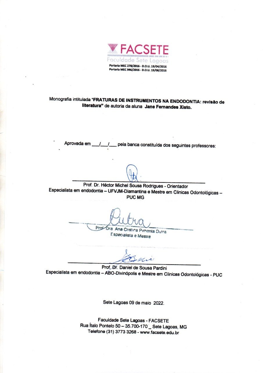 FRATURAS DE INSTRUMENTOS NA ENDODONTIA: REVISÃO DE LITERATURA