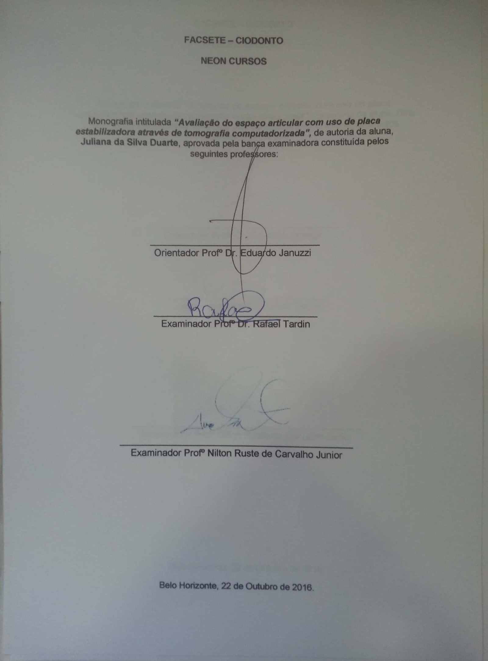 AVALIAÇÃO DO ESPAÇO ARTICULAR COM O USO DE PLACA ESTABILIZADORA ATRAVÉS DE TOMOGRAFIA COMPUTADORIZADA